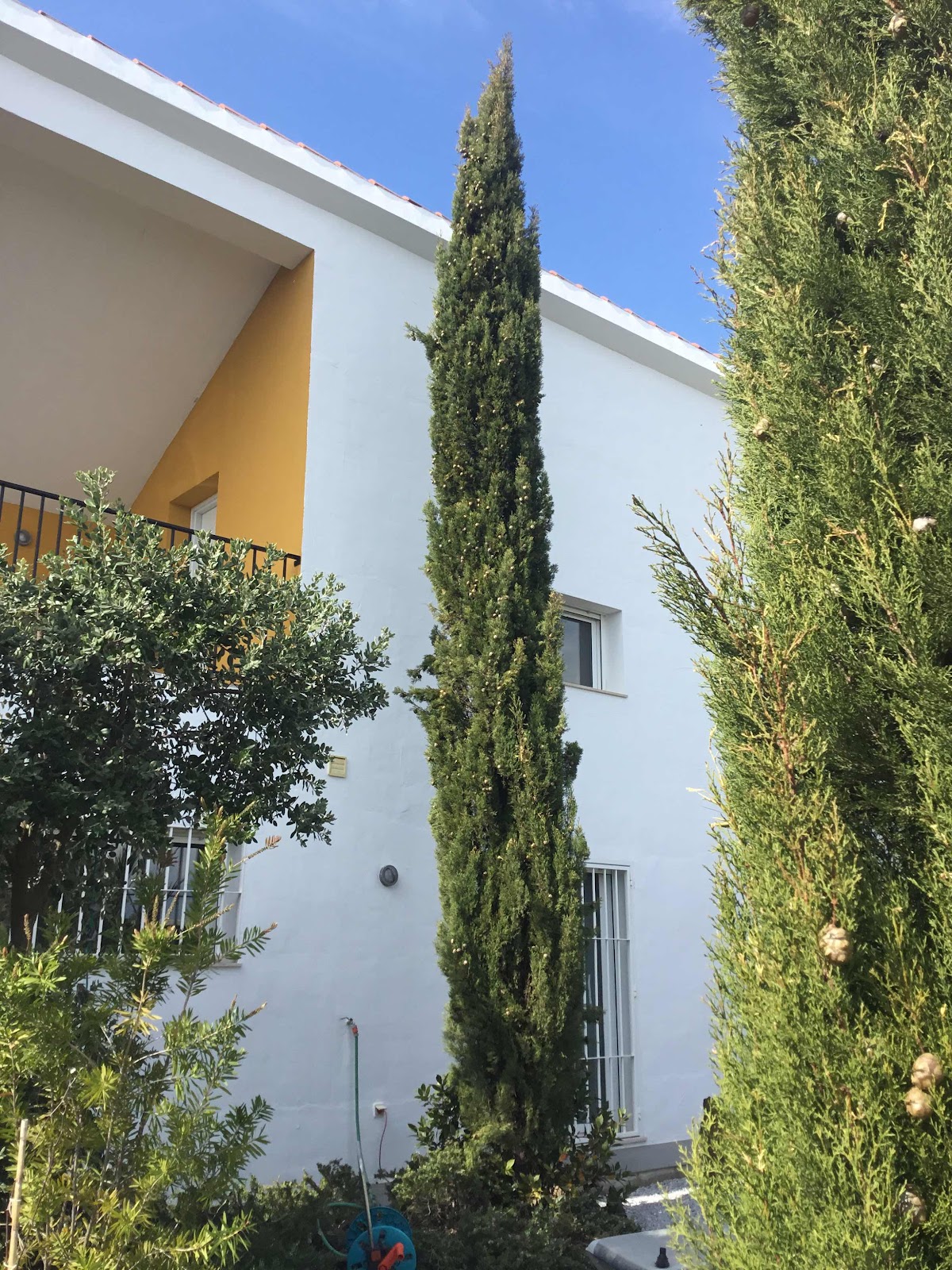 Mijn mooie cipres. Ruim zeven meter hoog heeft het zwaar.