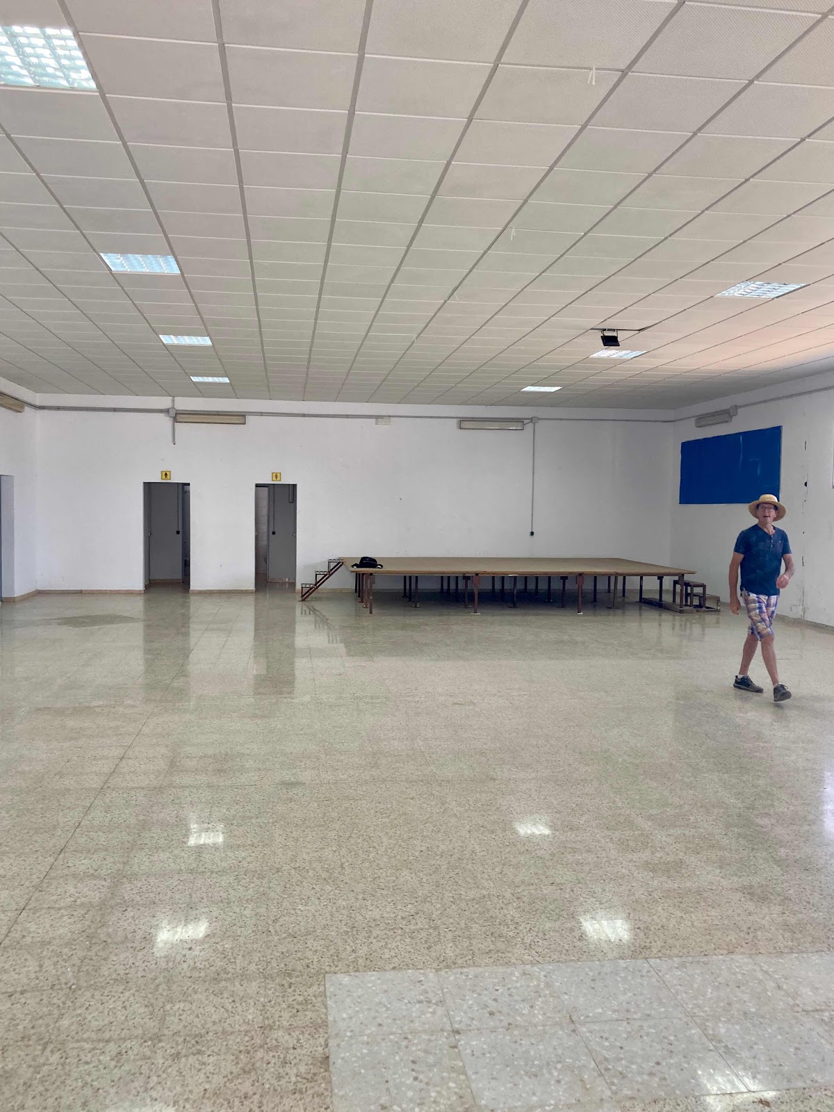 Een grote vierkante ruimte, lekker koel en met een podium. Wel wat basico.