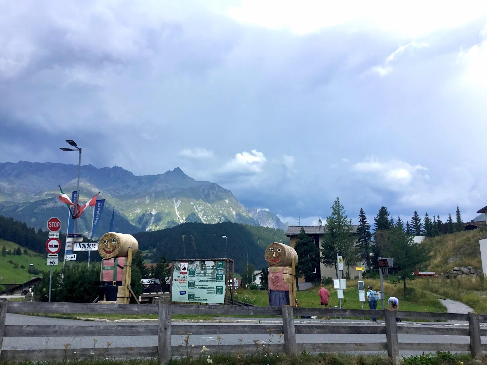 Om in Nauders te komen mochten we weer een flink stuk afdalen en droogden we de tent op het parkeerterrein van de SPAR waar we ook de dreigende onweerswolken zagen ontstaan.