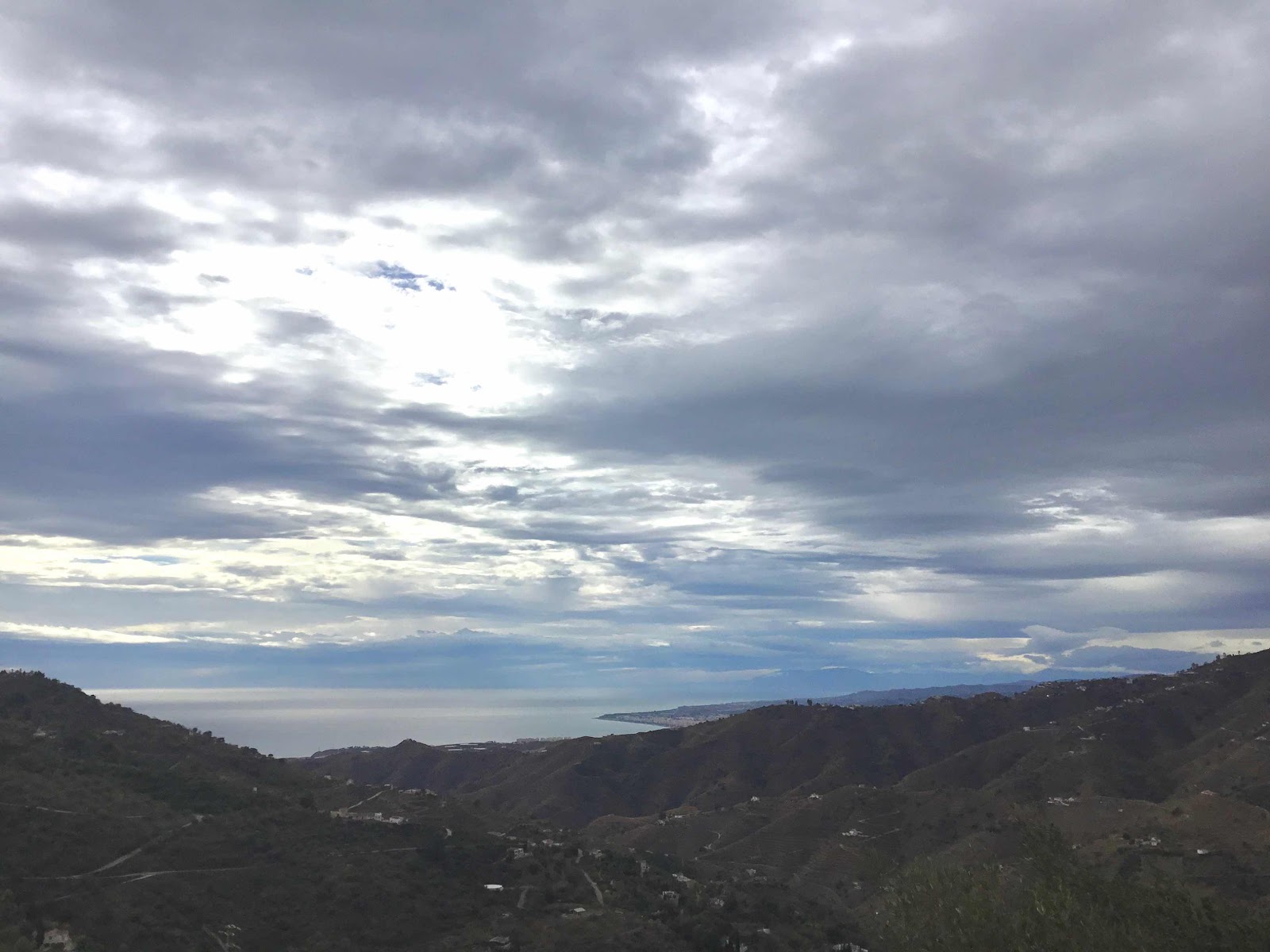 Zo tegen vijven zag ik regensluiers in de richting van Gibraltar maar daar hebben we niks aan. Anders dan dat het er prachtig uit ziet natuurlijk.