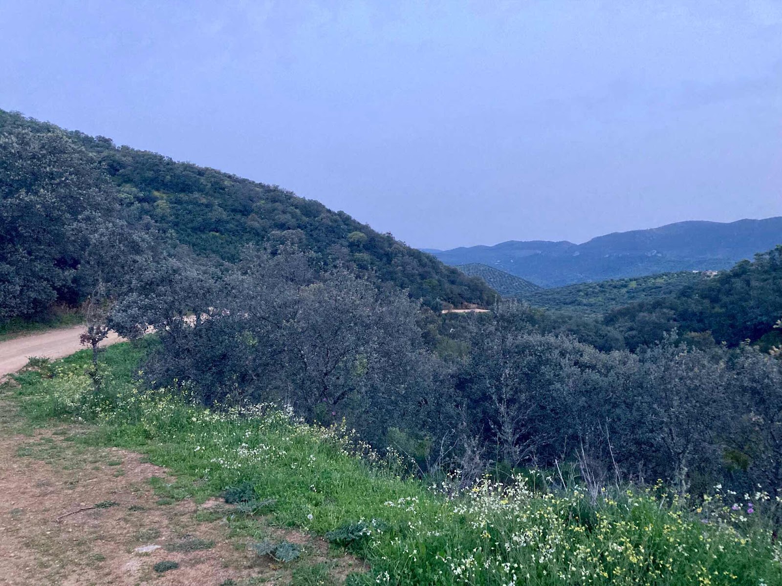 Inmiddels in de campo, maar de zon is nog niet boven de bergkam uit.