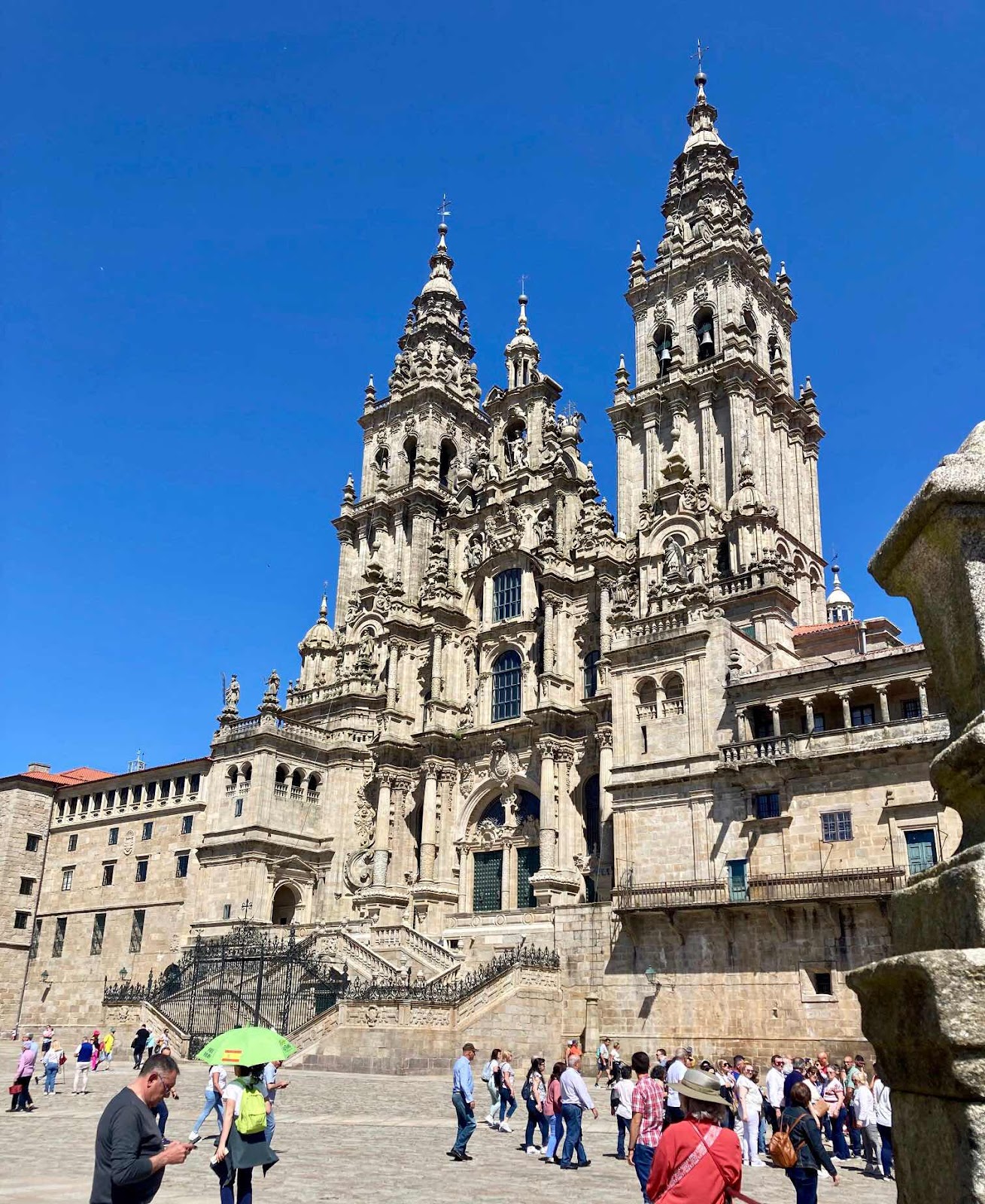 Met nog zeven kilometer te gaan zien we de torens van de kathedraal.