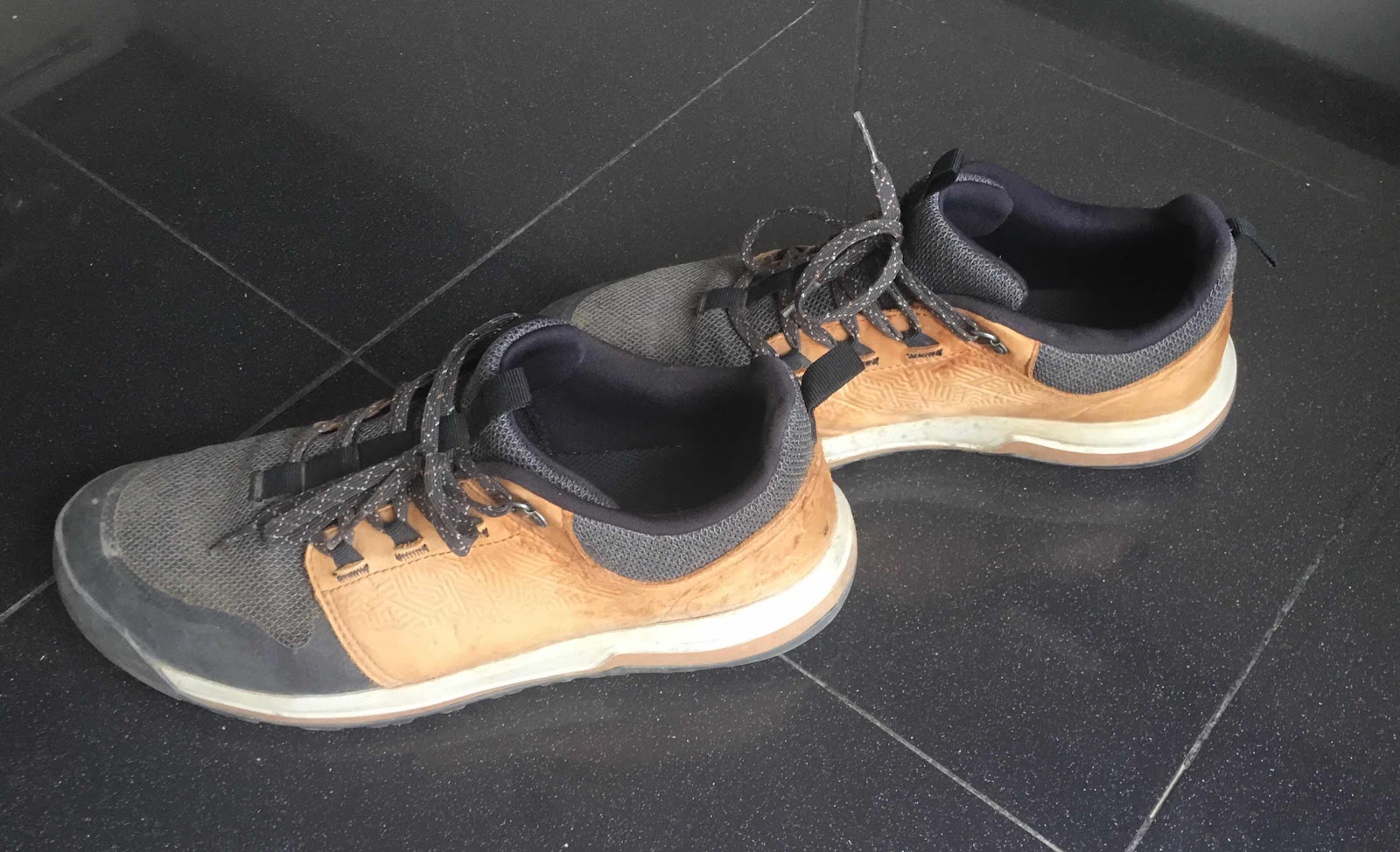 We liepen beiden op schoenen van de Decathlon waarover een Fransman onderweg zei dat het waardeloze dingen waren.