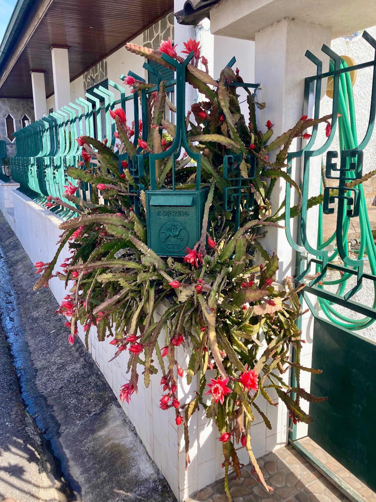 Tijdens de camino maakte ik een foto van deze bloeiende cactus en schreef als bijschrift: ik was al blij met een bloem. Want deze plant staat ook bij ons op het terras en vorig jaar had ik een bloem. Tja, dat is dan wel wat schraal ten opzichte van dit exemplaar.