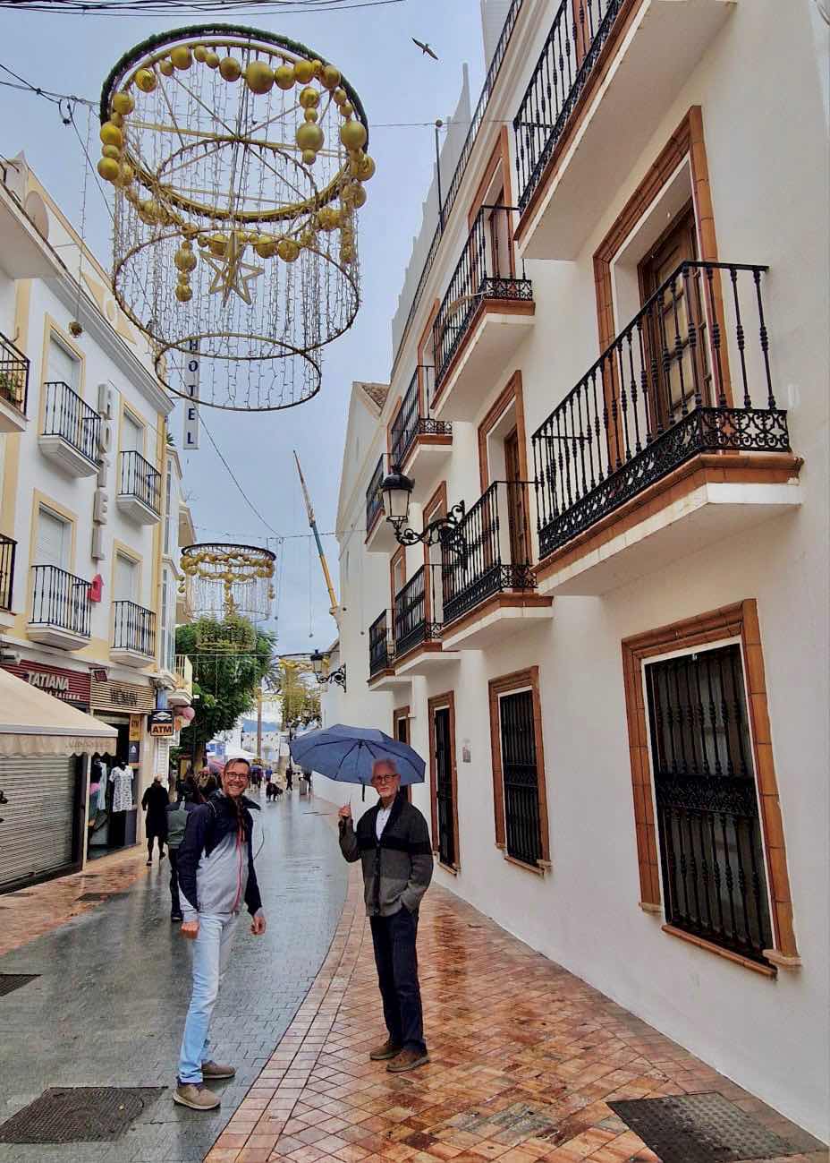 We zouden naar Malaga gaan om de uitbundige kerstverlichting te bewonderen maar daar zou het de hele dag hard en langdurig regenen dus besloten we om dan maar Nerja te bezoeken.