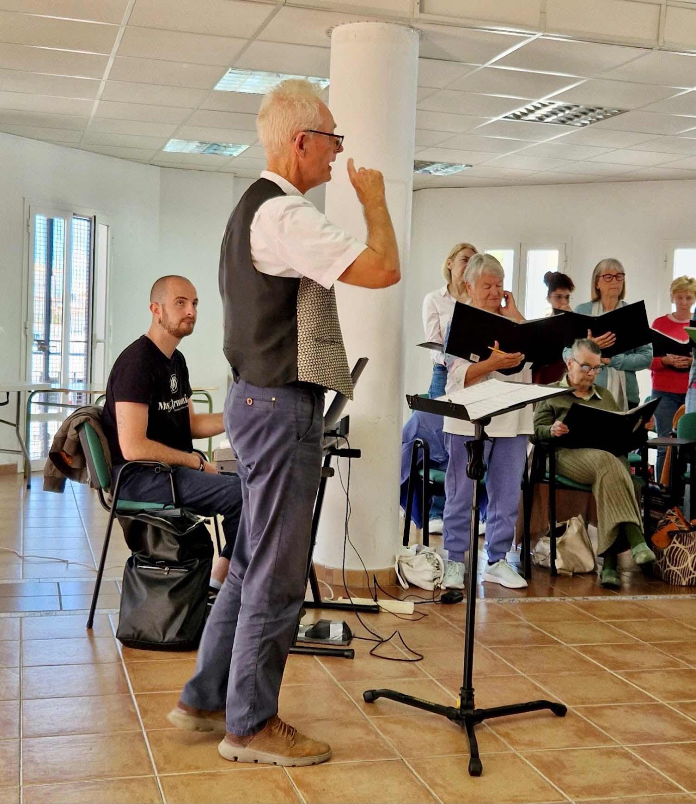 En van de drie mannen die zingen in het Nederlandse subkoor. Er waren meer foto’s maar niet iedereen wil op het blog. We zingen met het concert in mei De Zee van Toon Hermans en Pastorale van Shaffy en List.
