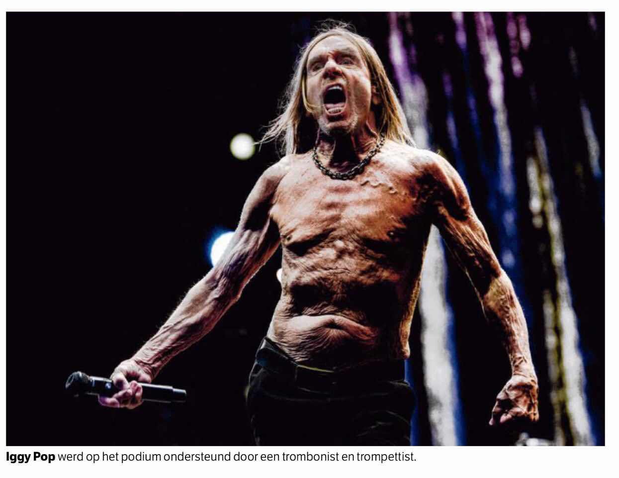 Iggy Pop, Tsja, de man is 78. Dan is een lijf getekend. En dat van hem met alle drugs en drank die er in zijn gegaan en een wild rock ‘n roll leven is een lichaam waar dus niet altijd even goed voor verzorgd is. ‘ I’m a real wild child’ zong hij ooit. Nog steeds een lekker nummer en erg van toepassing op hemzelf. Groeten, Elisa