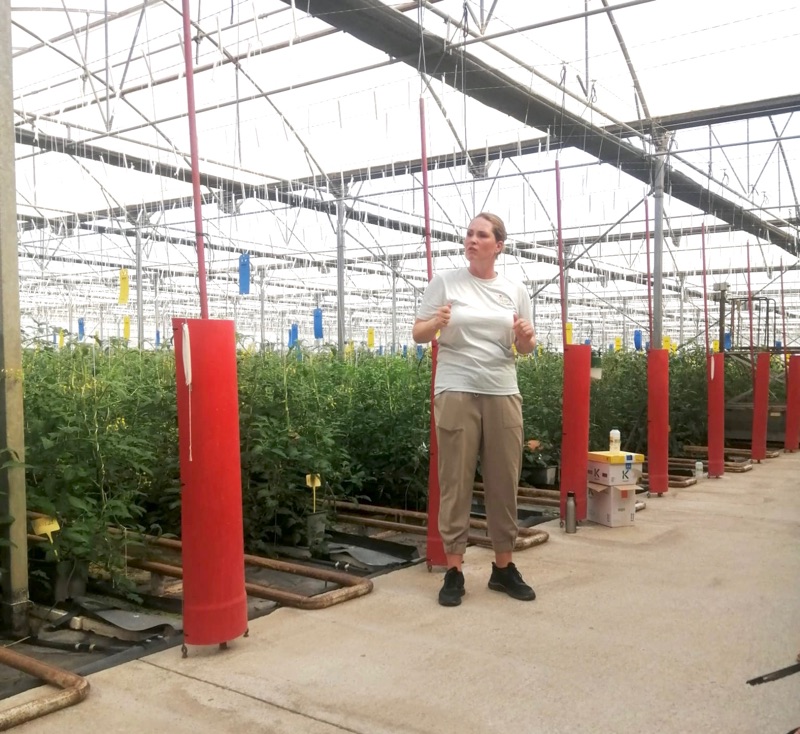 De gids vertelde dat er vanwege de aanhoudende droogte steeds beter wordt gelegd op hergebruik van water. Daartoe wordt er veel gekweekt in bakken met cocopeat. Dat laatste zorgt er ook voor dat er nooit een certificaat van biologische teelt verkregen kan worden.