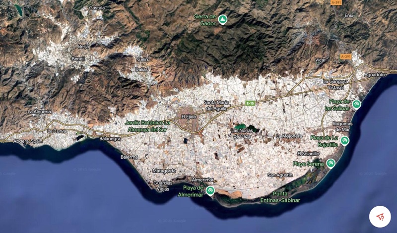 Het uitje van de gardenclub ging naar een kweker in het grootste aaneengesloten kassen gebied van de wereld. Al het wit op de foto, van het internet geplukt, zijn kassen. Het ziet er vreselijk uit. Ook als je tussen die kassen door rijdt. Het leek wel op een wereld na het instorten van de civilisatie. Plastic, plastic, plastic.