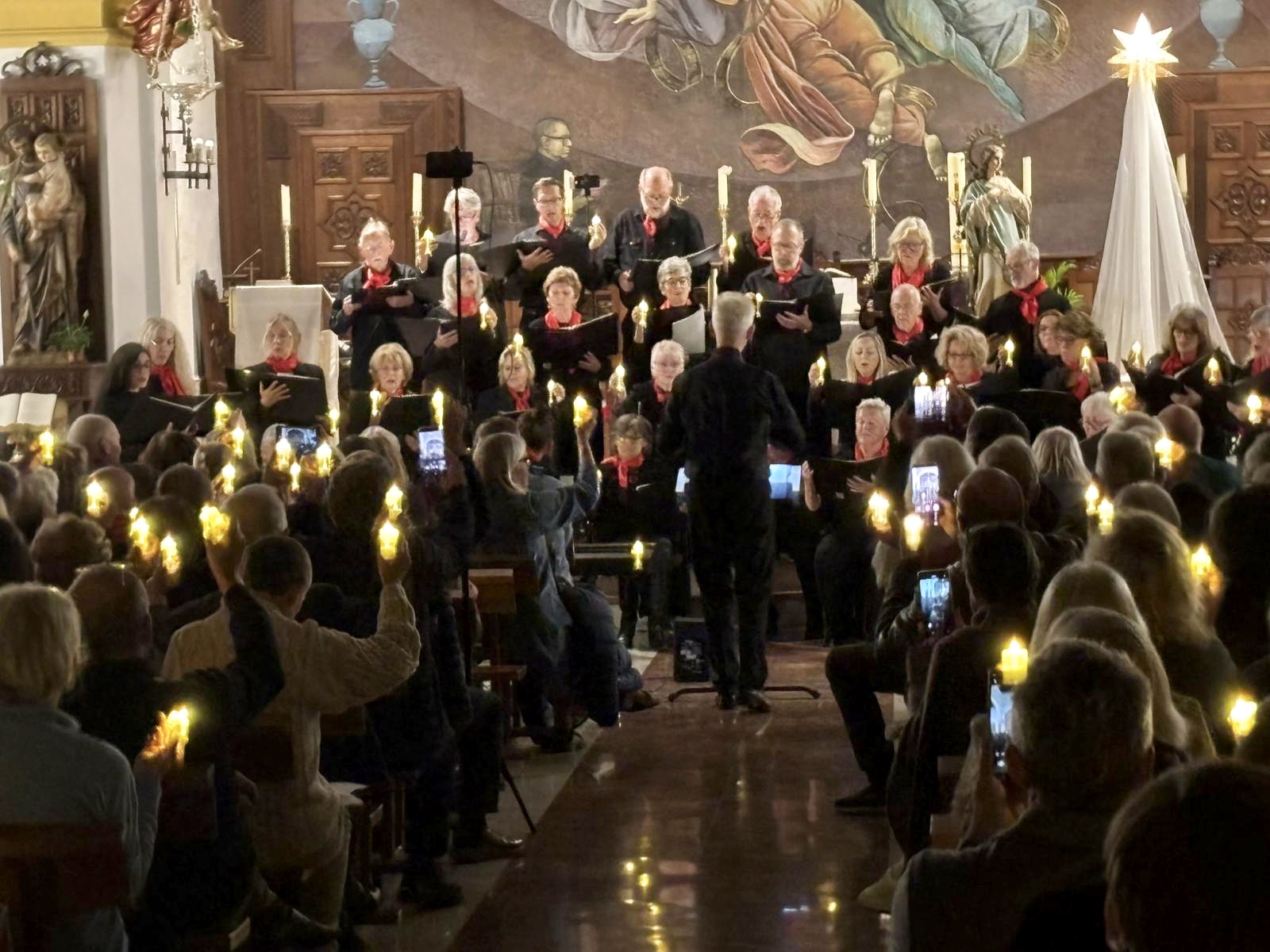 We zongen onder andere Jul Jul, een Zweeds lied van het licht. Dus moesten er elektrische lichtjes komen waarmee uitbundig werd gezwaaid. Met het uitreiken van die lampjes ontstond er een gevoel van pauze en werd de stijve concerterigheid doorbroken. Er werd dan ook natuurlijk, oohhhhh geroepen toen de kerklichten werden gedoofd.