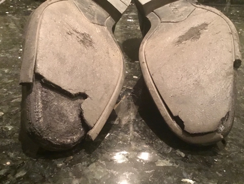 Na het concert bleek dat van beide schoenen de zolen waren verpulvert.