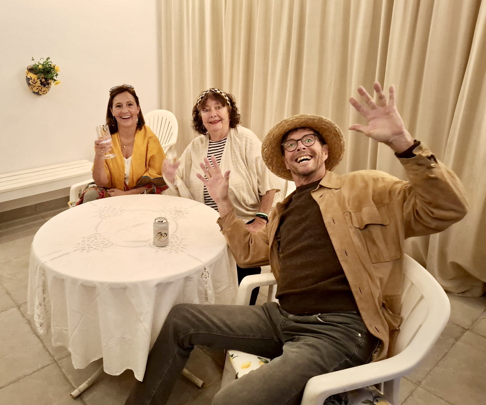 Ik speelde in drie scènes en dit is de laatste. De vierde persoon in dit stukje maakte foto’s van het ‘uitzicht vanaf het terras’. Waarop ik dan moest reageren met: ook van ons hoor.