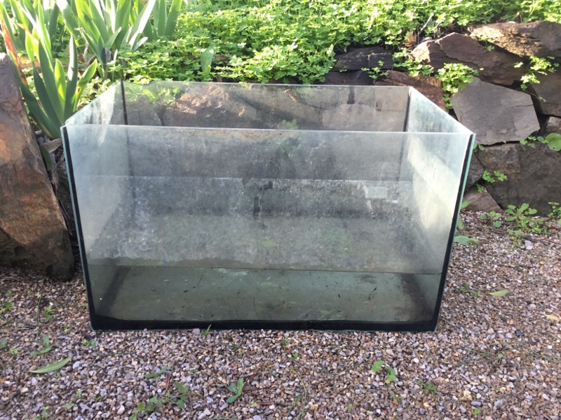 Voor ons vertrek had ik een aquarium neergezet als alternatieve regenmeter want de voorspelling gaven 150 millimeter aan en die passen echt niet in de regenmeter. Die meter stond dan ook tot de nok toe gevuld vol te zijn.