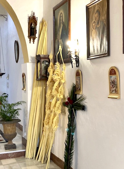 De palmtak die Jesus in de hand houdt is een gelig van kleur. Hiervoor wordt het hart van een palm ingepakt zodat de nieuwe bladeren geen chlorofiel kunnen maken, dus licht van kleur blijven en lekker zacht.
