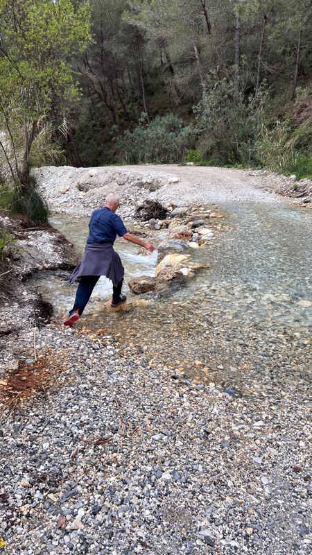 Wel een foto van hoe ik zichtbaar mijn balans verlies tijdens het oversteken van de rivier en een zeer natte voet haalde.