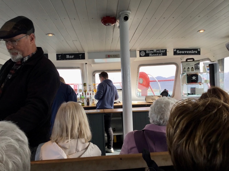 Nu zijn we echt heel mazzel met weer maar op het water was het beslist koud te noemen en zeker op het open bovendek. Maar het indrukwekkende uitzicht maakte veel goed.