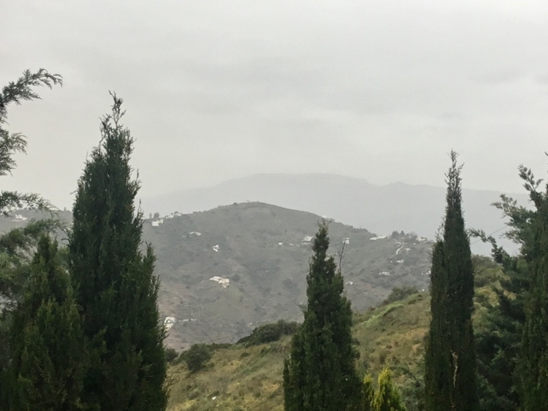 En dat ziet er zo uit. Een beetje kleurloos. Rick, die eergisteren in Madrid was, zei dat de de lucht in het binnenland echt oranje was. Dus klagen zullen we dan maar niet doen hier.