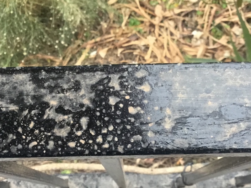 Maar alles ligt inmiddels onder een laagje stof en met de drie druppels regen die er vielen, ziet ons pas geverfde hek er zo uit.